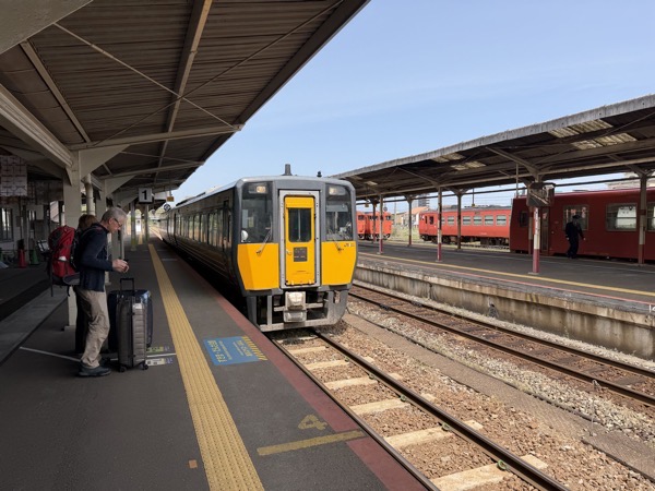 East Hagi station was bigger and nicer but there still wasnt much there. I couldn’t find an attendant and they didn’t have the video phone that connects to the JR call center. I asked a guy if I had to buy a ticket or use my Suica and he said he’d never taken the train from there. He was taking the bus. In fact, most people (and there were only like five) were taking the bus. He looked it up online for me and read the instructions to me. Thank goodness because it was in harder Japanese than I’m used to reading.