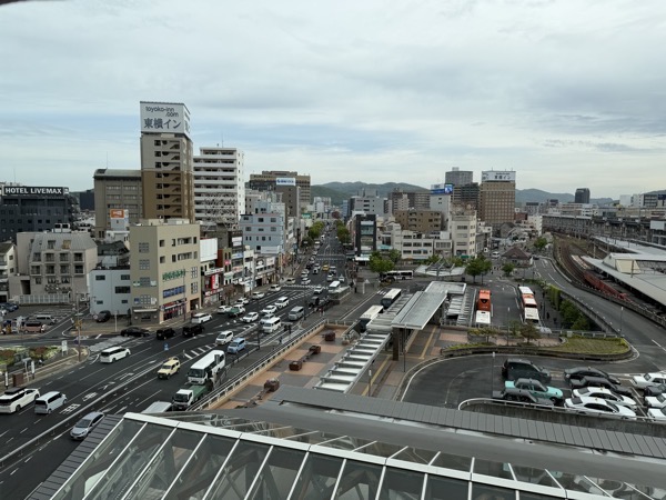I was excited to be in the double-decker car. Unfortunately I found out I was on the lower deck. There are parts of the ride where all I could see was a concrete barrier and I think the upper deck could see over the barrier. I got to see parts of the inland sea during the bridge crossing so it wasn’t all bad. A short uneventful trip.