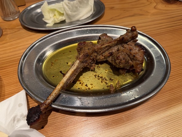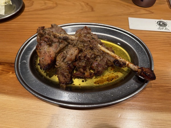 Almost everyone was ordering the “old” chicken and the young guy sitting next to me let me take a picture of his chicken when it came out. It was delicious. Very peppery and cartiliginous but I do like chicken. I didn’t like the chicken in Tokushima that much (kind of bland) but this was great. You cut it of of the bone using scissors and hope that you’re not clumsy enough to splatter the chicken fat all over.