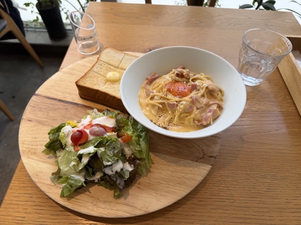 My sister also reminded me that a bakery cafe we went to was nearby. I think it was only 20% or 30% Japanese. Lots of other nationalities represented. The loudest table seemed like young Americans but the table of young Korean girls would randomly start singing. It was weird. The carbonara was good and the bread with it was even better.