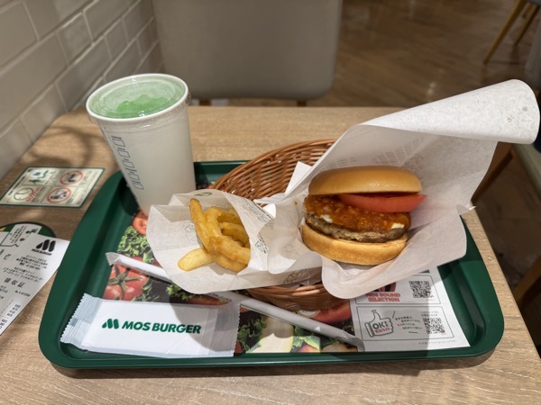 For dinner I went to Mos Burger. Standard Mos Burger and mixed fries & onion rings.