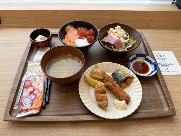 Breakfast at the Onyado Nono Fukui was pretty fancy. I thought the chirashidon was a nighttime thing on the restaurant board, but it’s what’s for breakfast! (Upper left.) It was another buffet. I thought I’d missed the miso soup but it was clam white miso soup. The salad bar also had pastrami so I took a piece. It was serious pastrami. There was also soba bowls but I didn’t want to eat that much more.