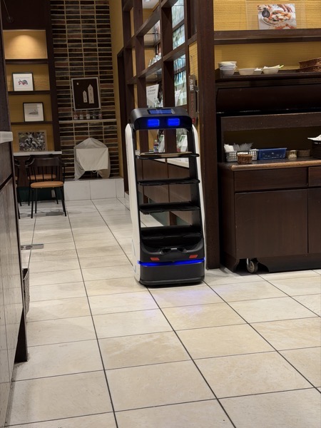 I went to find some food and I was pretty seafooded out. There were two pasta restaurants next to each other and the brightly lit one was full of schoolgirls so I picked the fancier-looking one. I knew it wasn’t all that fancy when I saw the food delivery robot and ordering on iPads.